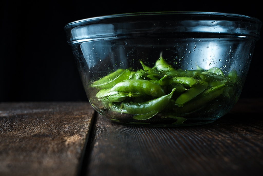 - In a medium size bowl, toss peas in olive oil. Grill in vegetable basket until evenly charred, but not burnt. You’ll want to retain a little crunch still in the peas. Using the same bowl you tossed the peas in oil (saves cleaning another bowl!), mix together remaining ingredients for the hoisin sauce. Toss the grilled peas in hoisin sauce and serve hot.
