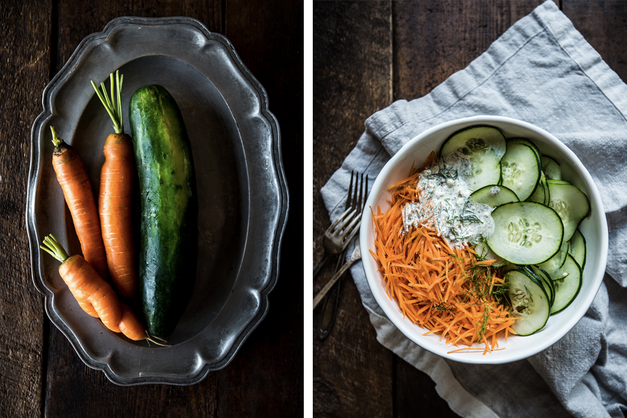 Simple, crisp, fresh, this recipe gets all the right adjectives for a perfect garden salad. We’ve paired carrot and cucumber for a toss with this creamy delicious dressing, however you could easily switch it up with other raw garden vegetables (for instance radish, celery, lettuce, snap peas, cabbage…) as another tasty way to enjoy all of that fresh-picked garden bounty.