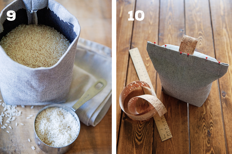- Fill with dry rice or beans roughly two-thirds full. (I use the full 7 cups in each of mine).