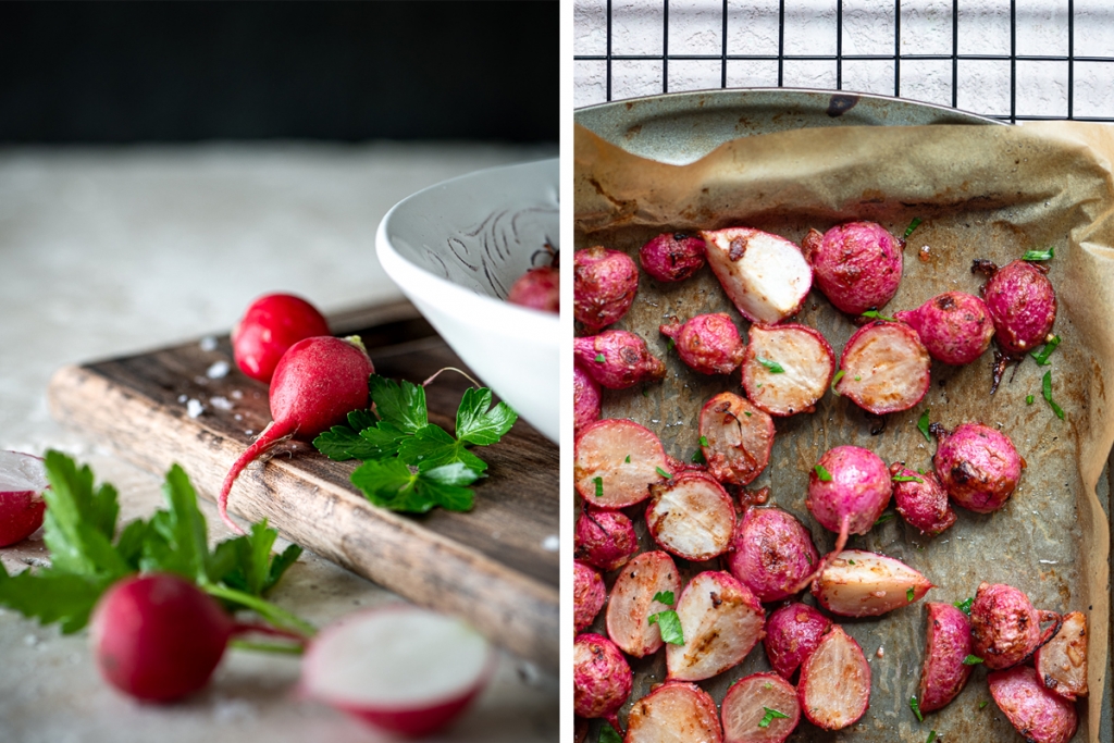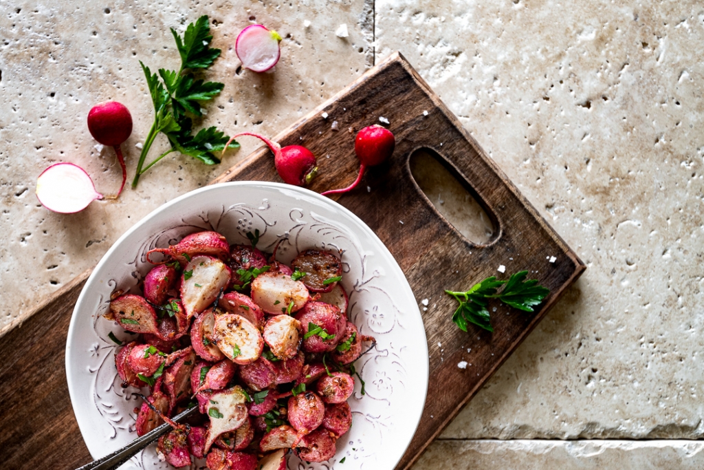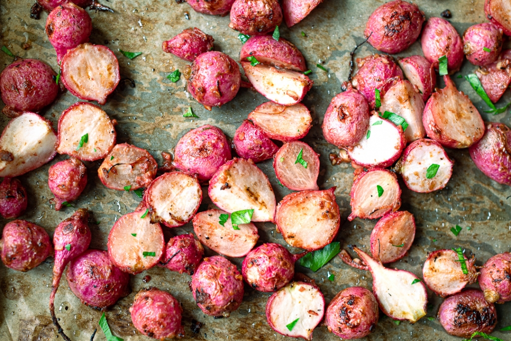 Did you know you could roast radishes? Many people have never tasted them in any form other than raw (and sometimes pickled)– we sure hadn’t until we moved to the farm!