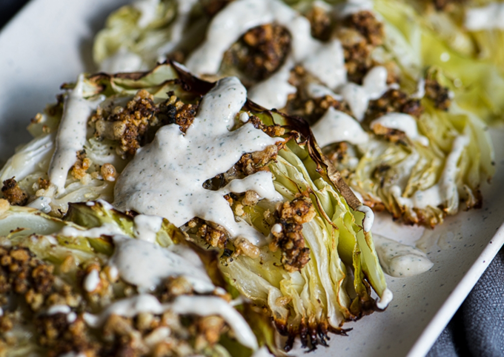 Have you ever tried roasting your cabbage before? Such a comforting and homey feel. Cabbage takes on a pleasing, buttery flavour and melt-in-your mouth texture when cooked. Pair that with a little crunch and a bit of creamy as this recipe does, and you’ve got a wonderful side to a summer or fall meal.