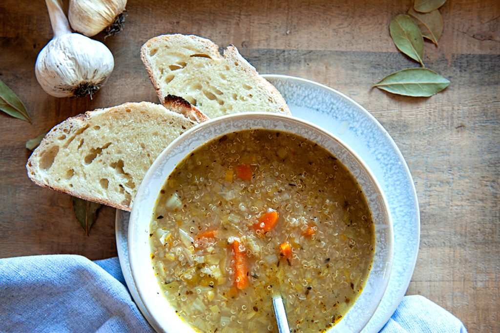 This soup is an easy favourite over here in our family, using four of our fall garden vegetables– leek, cabbage, garlic and carrots. The kids all love it (which is a feat in itself!) and we make it with our homemade veggie broth, but you could certainly substitute chicken stock, or even water– it’s delicious all three ways. Serve with a slice of warm crusty bread smeared with butter, or some homemade sourdough… mmm, September heaven.