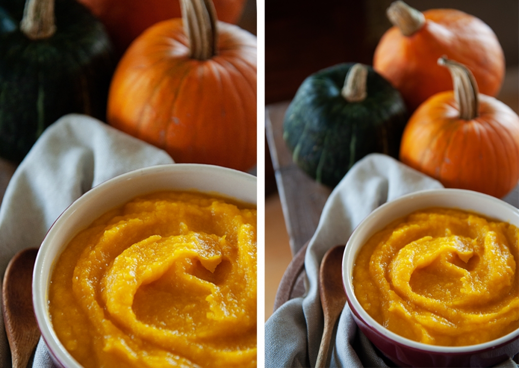 All of autumn I will usually keep a stock on hand of fresh pumpkin or squash puree, stored in the refrigerator, to use whenever the inspiration strikes. It gives such a delicious fall flavour (and colour) to both meals and baking alike.