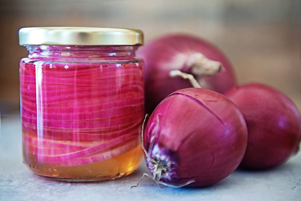 - Get pickling! This can be done anytime ahead, even days before to save time. Place sliced onion in a medium container or bowl. Bring the remaining pickling ingredients to a boil and pour over raw red onions, cover, transfer to the fridge and allow to sit for at least 2 hours.