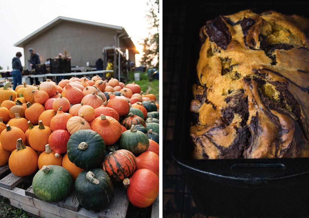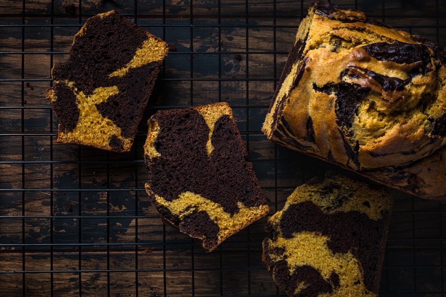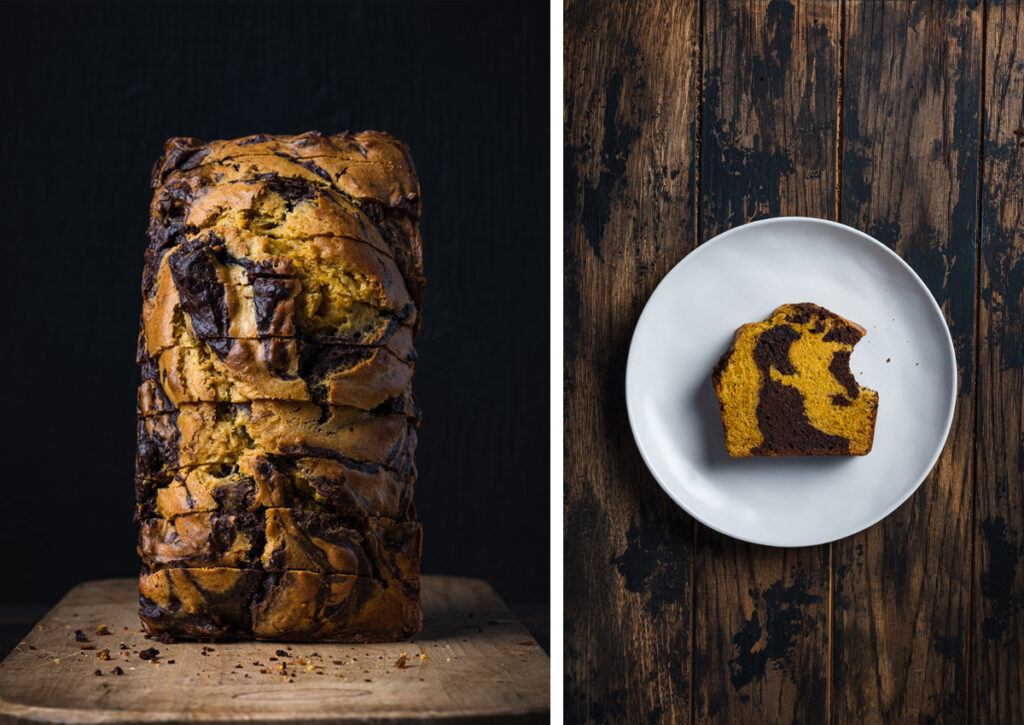 - To make the marbled pattern, add a few scoops of the squash batter to the greased loaf pan, and then a few scoops of chocolate. Almost like a checkboard pattern. After you have one layer done, use a butter knife to run through the batter. Repeat with remaining pumpkin and chocolate batter. Resist the urge to over swirl. The more you swirl, the less marbled it will look.