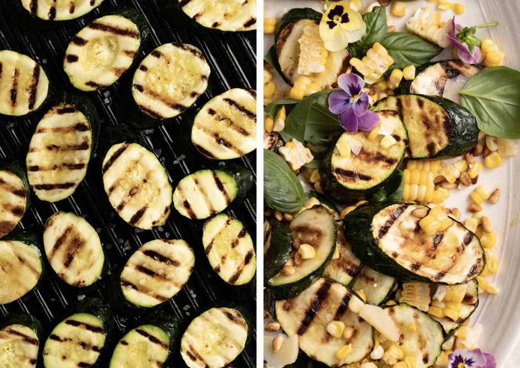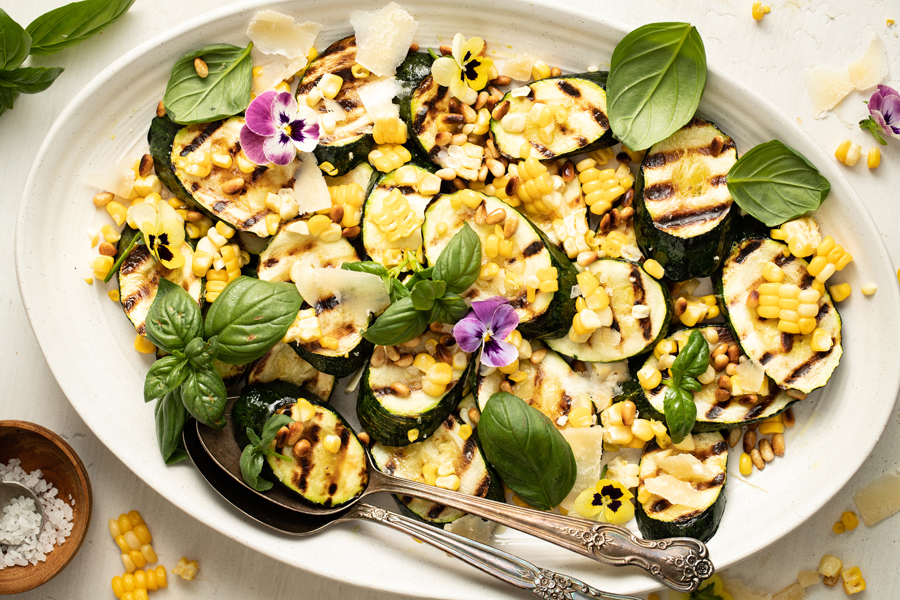 Nothing says summer like the grill and a fresh garden salad– and this recipe involves both! A delicious side, this plate of goodness stars three of those ever-loving items coming fresh from our farm to your table: tender zucchini, sweet corn, and fragrant basil. Yes please!