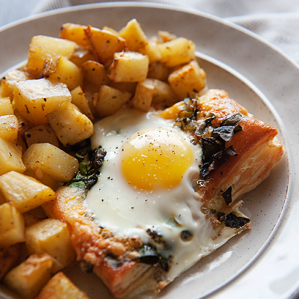 Egg + Swiss Chard Breakfast Pastries with Homestyle Potatoes