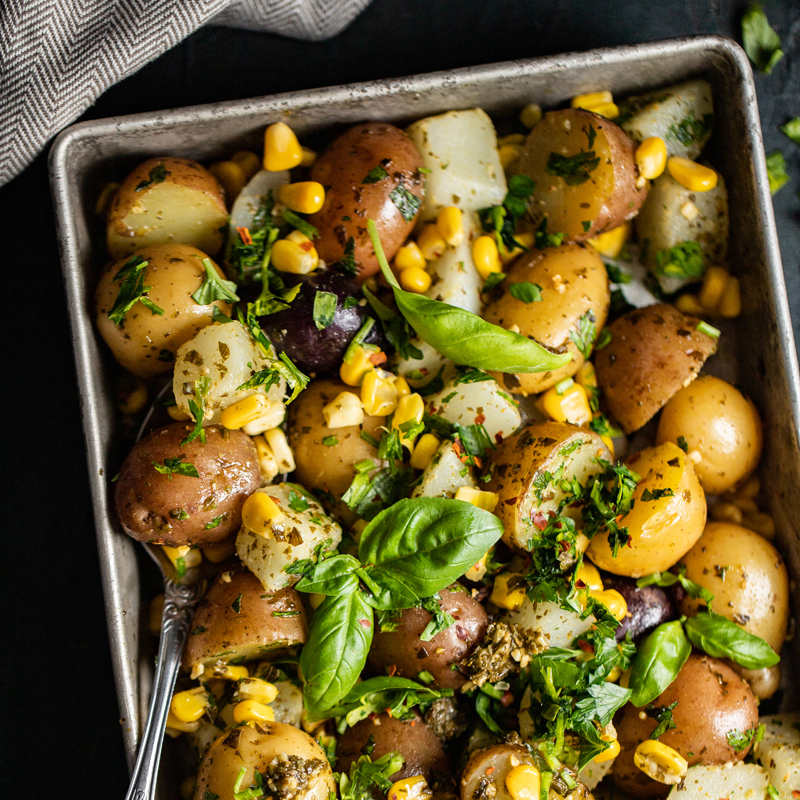 Kohlrabi + Potato Salad with Garden Herb Pesto