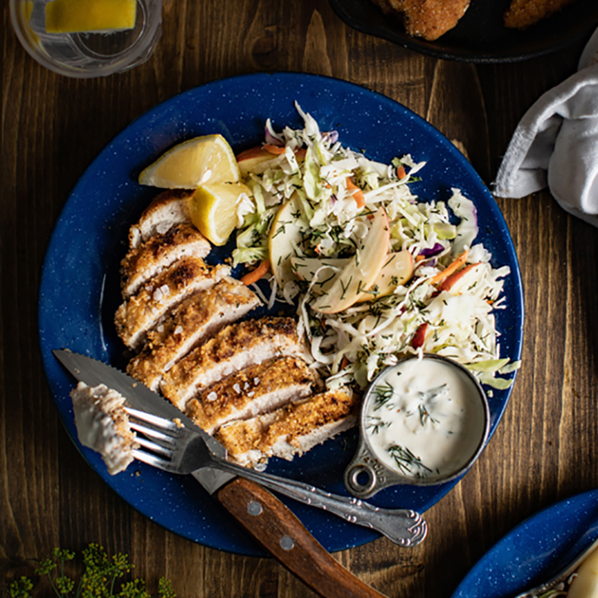 { Chicken Schnitzel with Apple Fennel Slaw } [...]