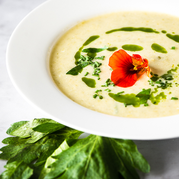 Creamy Fall Soup with Mushrooms, Corn + Leeks